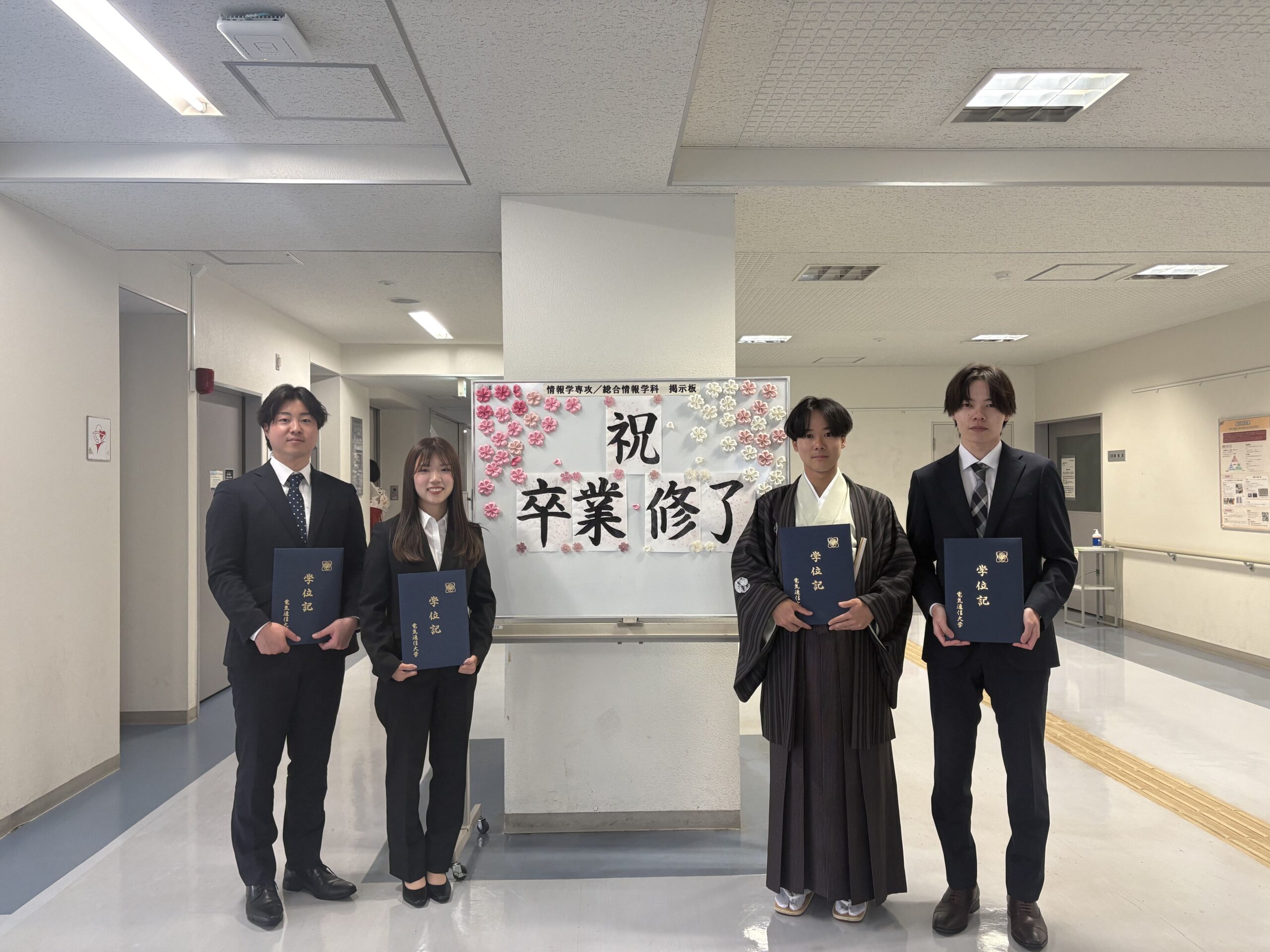 2026年3月25日に令和7年度卒業式・学位記伝達式が執り行われ、当研究室からは学部4年生3名(阿部 龍之介君、三浦 翔大君、山口 夢叶君)と修士2年生2名(小林久也君、多田みるりさん)が参加しました。 また、先立って3 […]